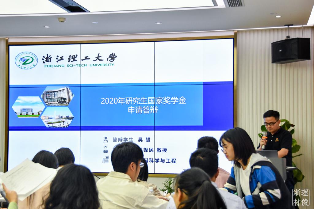 2019/2020学年研究生国家奖学金答辩会在24号楼415隆重举行,由学院党委书记傅雅琴教授,学院党委副书记周照东老师,学院学位委员会专家代表孔祥东教授、金达莱副教授,参评本次国家奖学金学生的导师代表以及19级研究生代表组成的评审委员会全体成员出席答辩会,其余各年级同学通过在线直播方式集中观看了答辩会。