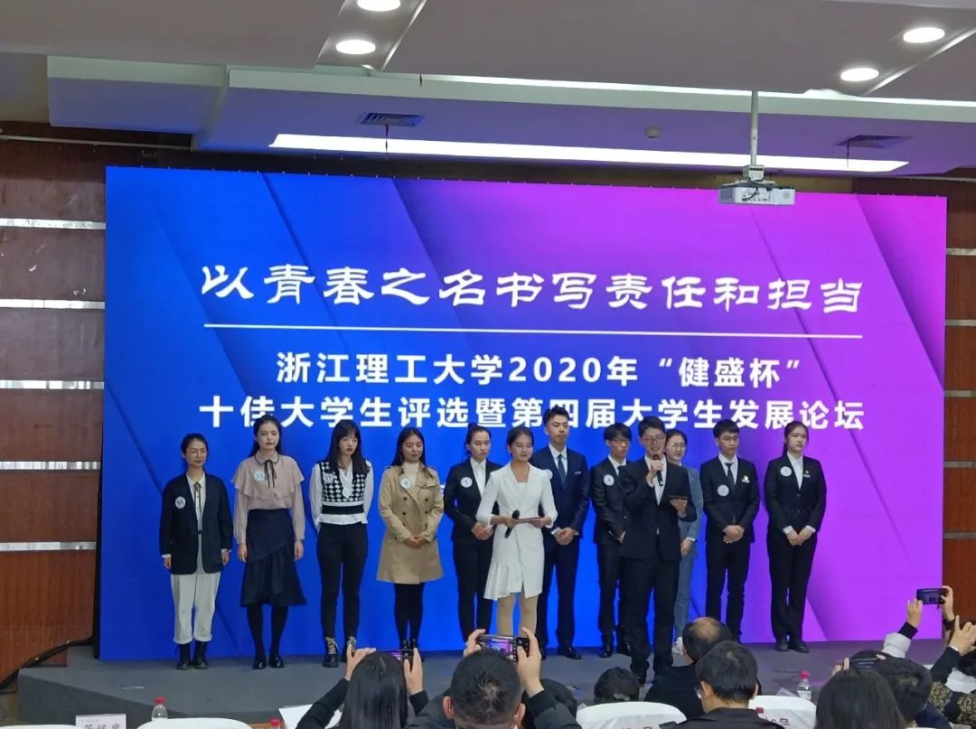 11月25日下午,由校党委学工部、学生处主办的2020年“健盛杯”十佳大学生评选暨第四届大学生发展论坛在行政楼二楼报告厅举行。