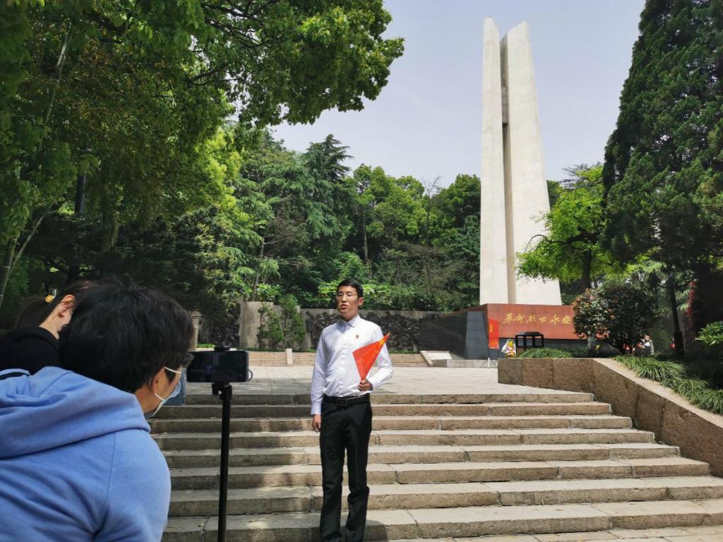 参观完毕后,大家沿着烈士纪念碑前的台阶拾级而上。在纪念碑前,学院组织员魏厚钱带领全体党员一起重温入党誓词。“我志愿加入中国共产党……”再次喊出一句句铿锵有力、振奋人心的入党誓词,让大家再次回顾自己的入党初心。
