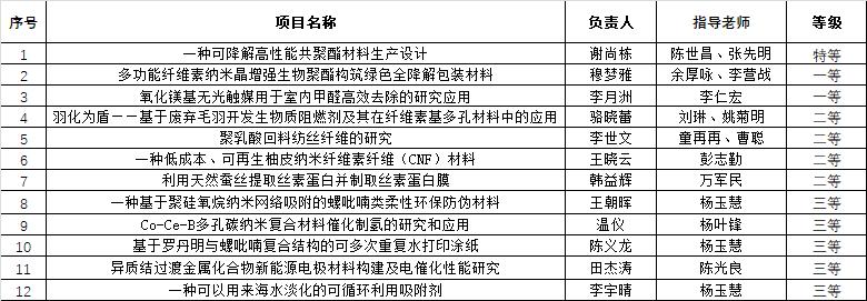 根据浙江省大学生新材料创新设计大赛要求,本科生组的特等奖、一等奖、二等奖获奖项目和研究生组的特等奖、一等奖获奖项目推荐参加省赛。