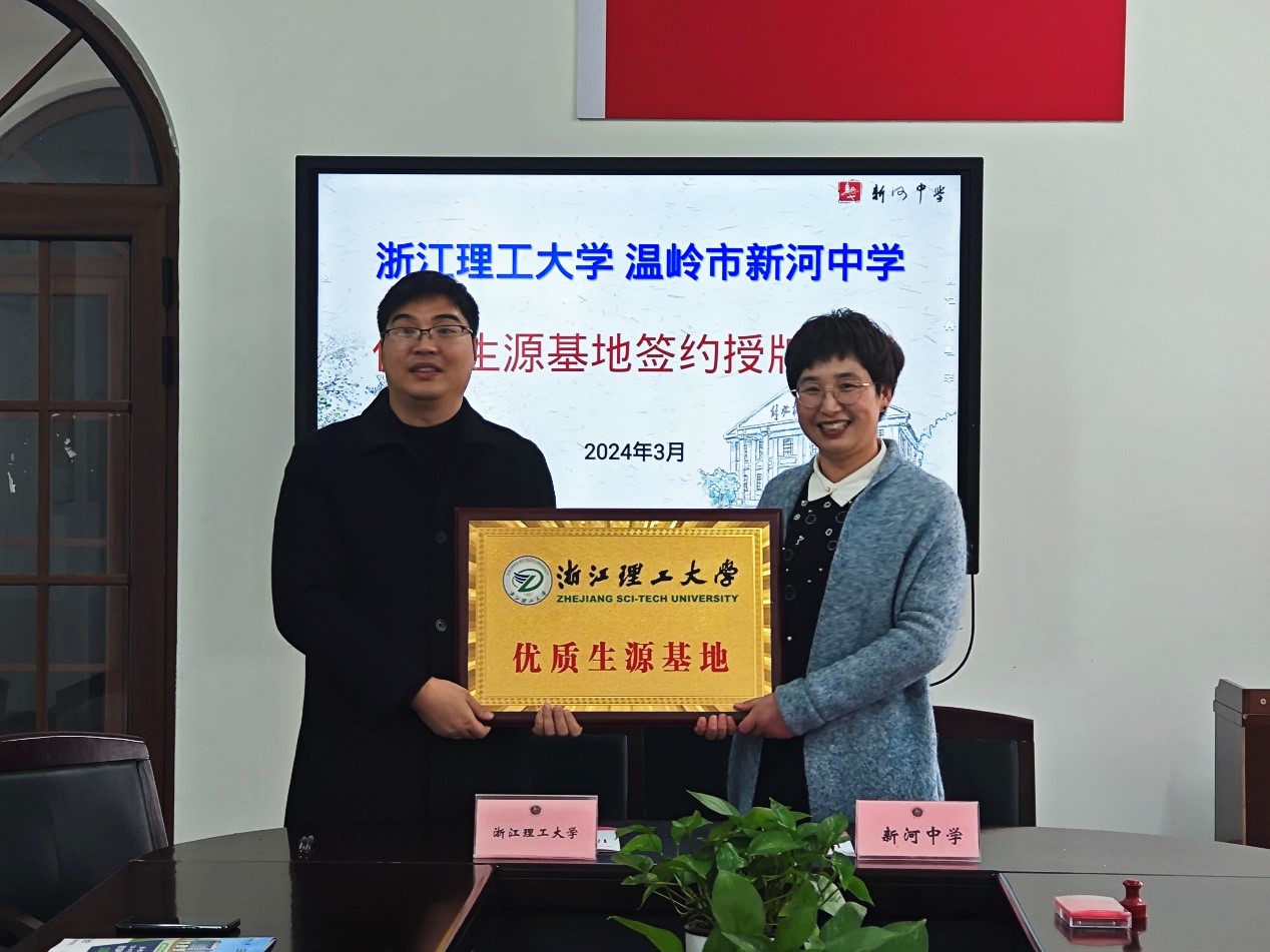 3月14日上午,材料学院赴温岭市新河中学开展“优质生源基地”签约揭牌仪式暨“三位一体”招生宣讲。新河中学副校长林霞、高三年级部主任陈霞、高三年级部副主王静刚、升学考试中心主任陶正,校招生与就业指导处副处长黄君,糖心vlog