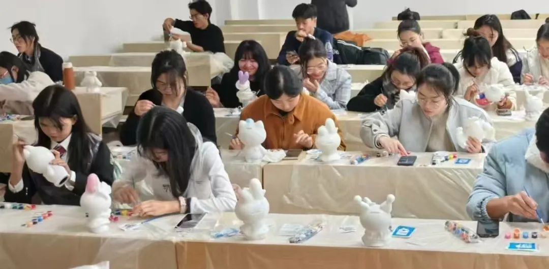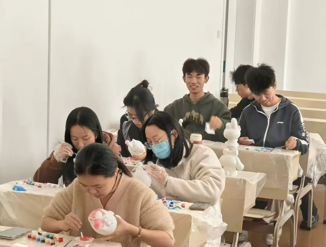 活动现场提供了洁白的石膏娃娃素坯以及丰富多样的绘画工具,吸引了众多学生的热情参与。