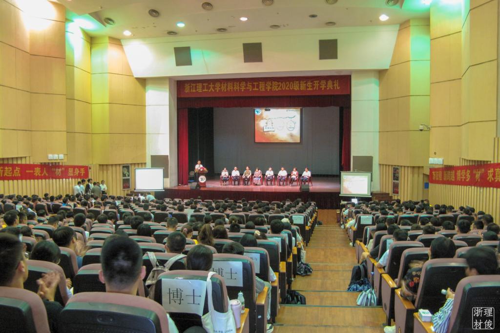 2020级本科生、研究生新生开学典礼在学生活动中心小剧场隆重举行,学院党委书记、博士生导师傅雅琴教授,学院副院长、博士生导师张先明教授,学院副院长、硕士生导师杨叶锋教授,学院学术委员会成员、博士生导师孔祥东教授、刘向东教授,学院学术委员会成员、硕士生导师王騊教授,学院材料工程系主任金达莱教授,学院高分子材料系主任 朱曜峰教授,以及新生班主任、行政办公室老师及2020级全体本科生、研究生出席了活动,大家齐聚一堂,现场座无虚席。本次典礼采用线上线下相结合的方式。活动由学院党委副书记周照东老师主持。