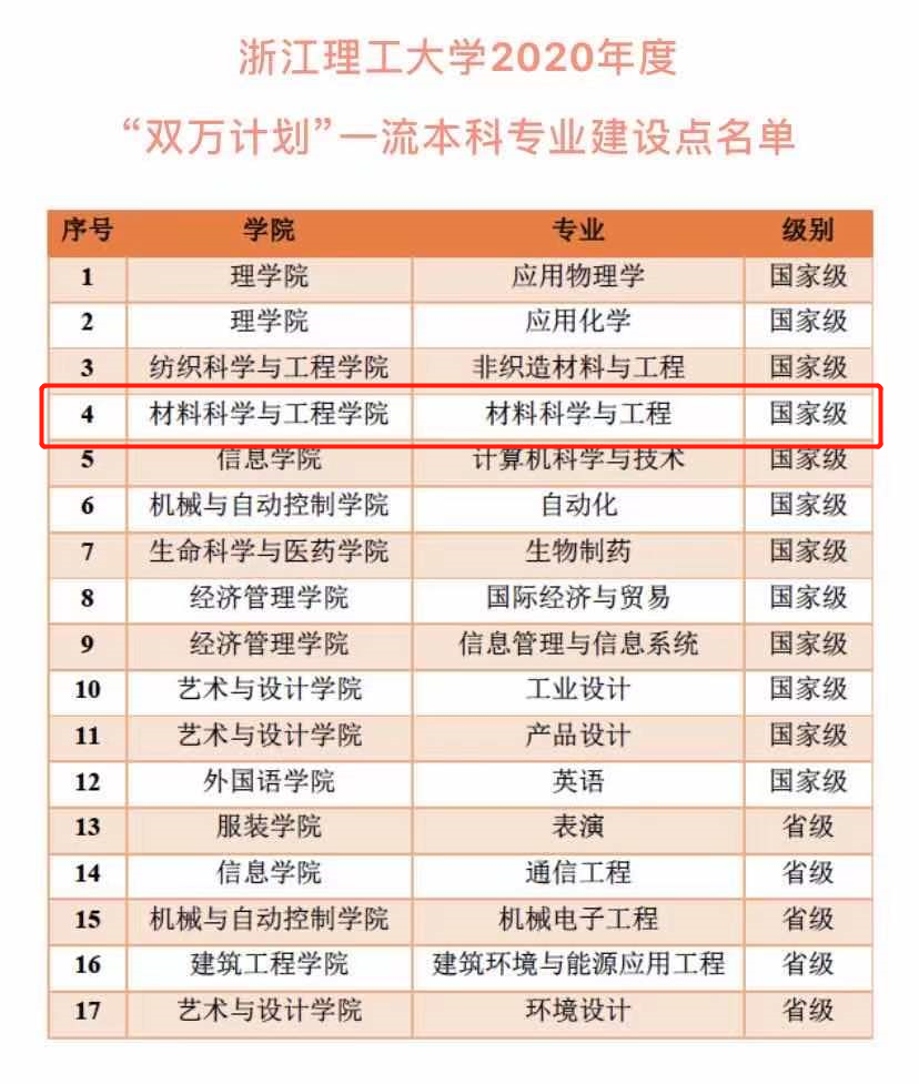 近日,教育部公布2020年国家级和省级一流本科专业建设点名单,材料学院材料科学与工程专业成功入选国家级一流本科专业建设点。