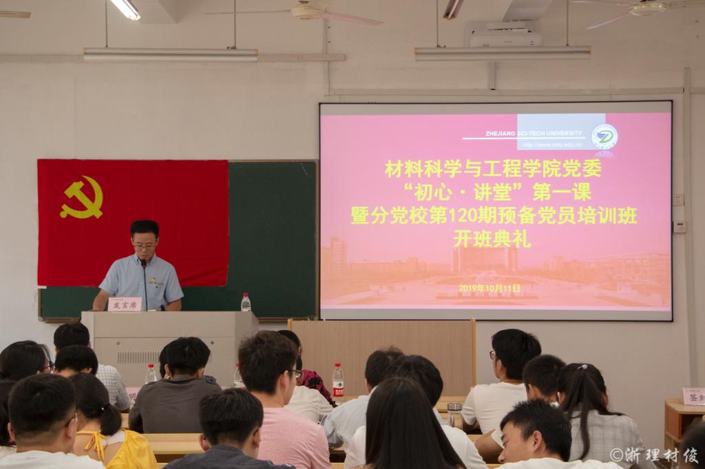 2019年10月11日下午,材料科学与工程学院在2-S215教室举办了材料科学与工程学院“初心·讲堂”第一课暨党校第120期预备党员培训班开班仪式。“初心·讲堂”第一课由学院党委委员周照东老师主持,学校“不忘初心、牢记使命”主题教育巡回督查组组长、校工会主席严丹萍老师、学院党委书记傅雅琴教授、学院副院长张先明教授出席,学院高分子系教工党支部、博士生第一党支部全体党员以及2019年新发展预备党员参加本次党课。
