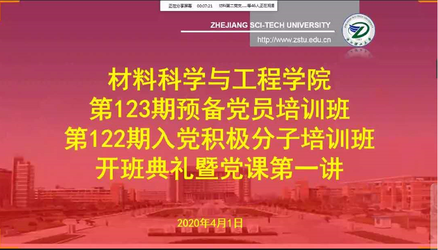 学院党委委员周照东老师、学院党委组织员魏厚钱老师以及2019年下新发展入党积极分子和预备党员50余人,身处五湖四海,一起齐聚云端共同参加党校开班仪式暨党课第一讲。
