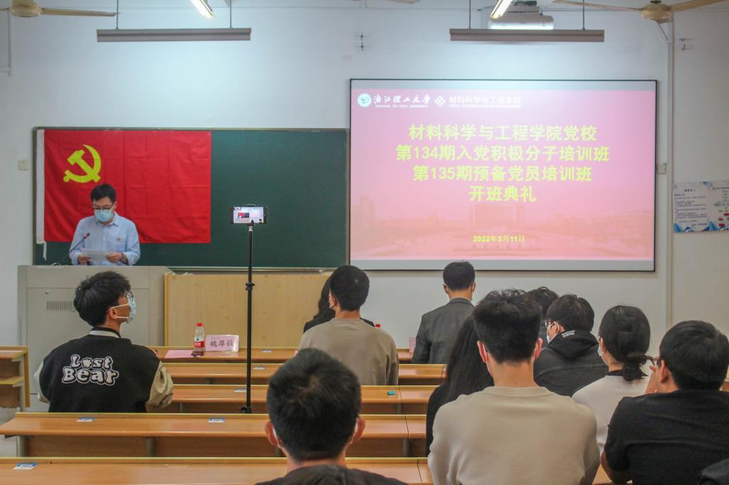 为进一步提高预备党员和入党积极分子的政治素质和理论修养,教育和引导广大青年骨干的坚定理想信念。5月11日,材料科学与工程学院在2-S127教室举分党校入党积极分子培训班(总第134期)、预备党员培训班(总第135期)开班典礼暨“喜迎党的二十大 共筑材料强国梦”红色材俊文化节启动仪式。学院党委书记仰滢老师,学院党委副书记、纪委书记周照东老师,学院组织员魏厚钱老师以及180位新一批预备党员、入党积极分子学员们共同参加。活动通过线上线下相结合形式开展,开学典礼由组织员魏厚钱主持。