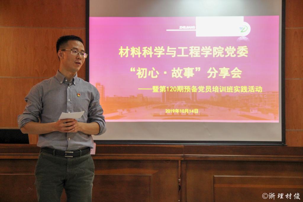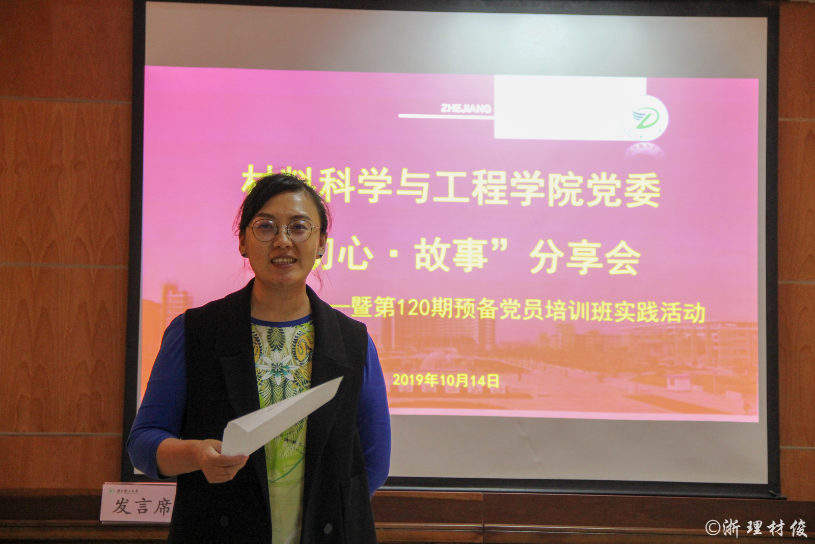 2019年10月14日下午,材料科学与工程学院在教工活动中心召开“初心•故事”分享会暨分党校第120期预备党员培训班实践学习课,学院党委委员周照东老师,学院各党支部书记、副书记、委员以及预备党员培训班学员出席并参加会议,分享会由学院组织员魏厚钱老师主持。