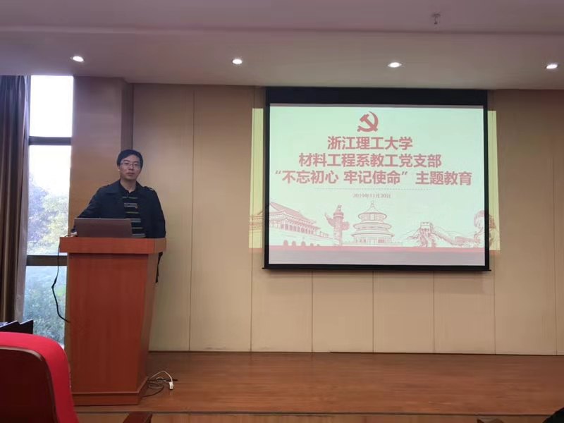 2019年11月20日下午,材料科学与工程学院举办了党委“初心·讲堂:百场党课进基层”专题党课第五讲,由副院长杨叶锋向材料工程系教工党支部全体党员同志进行讲授。