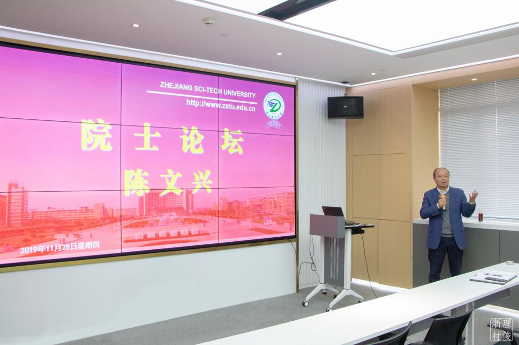 11月28日上午,材料科学与工程学院在24号楼报告厅举办陈文兴院士论坛。出席本次论坛的有中国工程院院士、浙江理工大学校长、材料科学与工程学院教授陈文兴,材料学院党政领导班子成员、学院全体教师及部分博生生和研究生等80余人参加论坛。论坛由校党委委员、材料学院院长姚菊明教授主持。