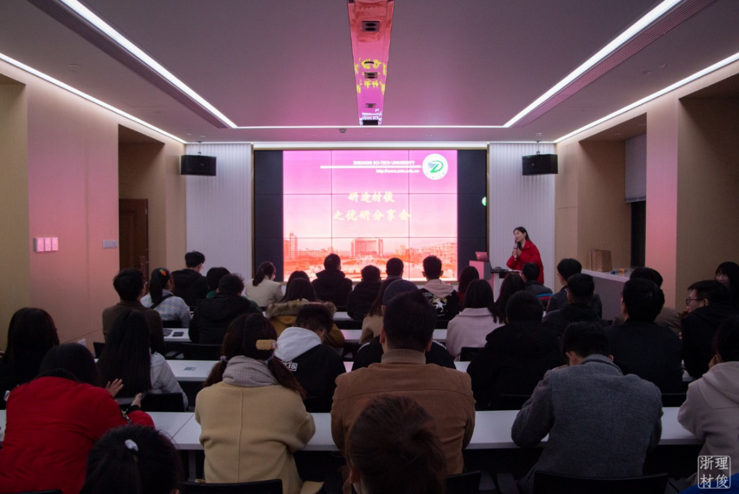由材料科学与工程学院-科研与创新中心主办的“研途材俊之优研分享汇”活动于2019年12月5日晚在24号楼415报告厅举行。活动邀请到四位实践丰富、科研卓越的优秀分享者,他们分别是17级硕士研究生李想、19级博士研究生顾艳和齐晓明以及17级硕士研究生张永和。辅导员魏莉莉老师和近100名硕士研究生参加了本次交流会。