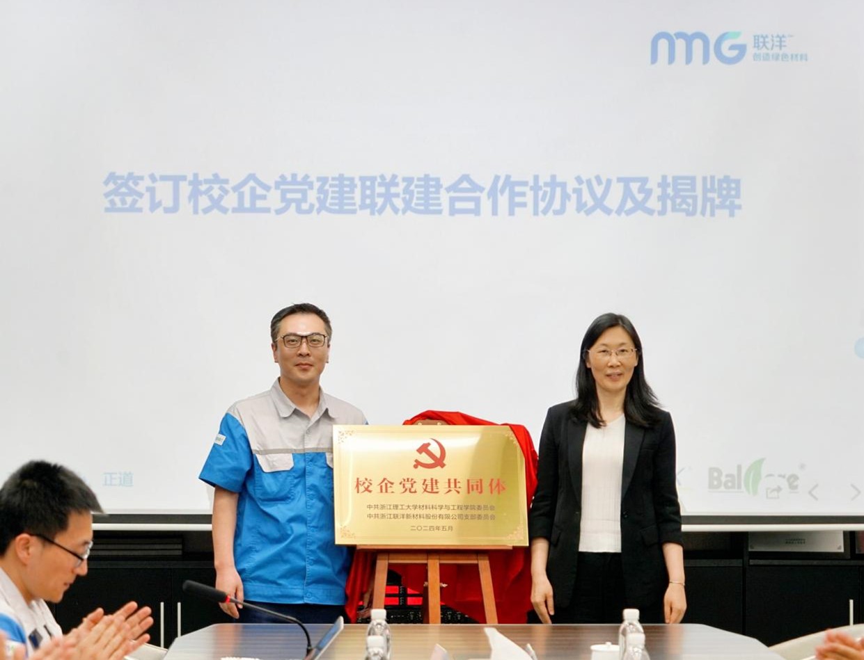 与浙江联洋新材料股份有限公司举行校企合作签约暨“联洋新材教育基金”捐赠仪式。浙江联洋新材料股份有限公司董事长、总裁蔡正杰,执行副总裁魏莉丽,总裁助理万辰,副校长姚菊明出席仪式。仪式由浙江联洋新材料股份有限公司管理中心总监平霞主持。