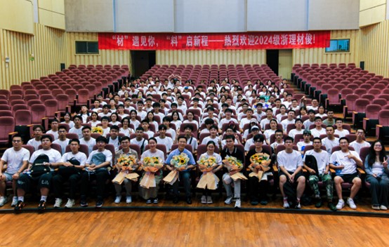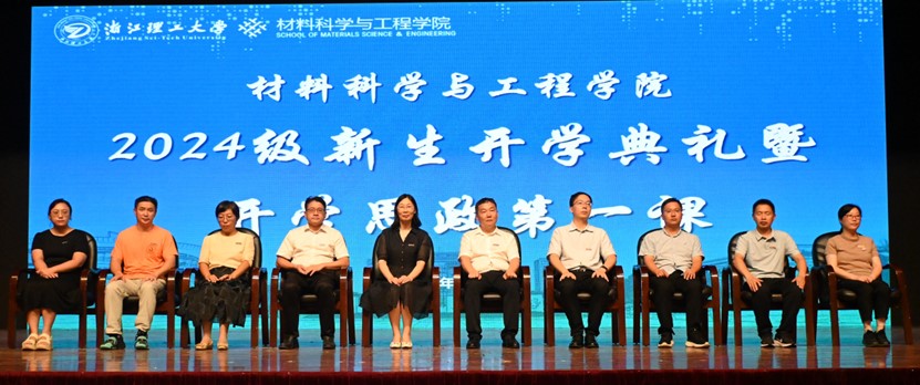 2024级新生开学典礼暨开学思政第一课在学生活动中心小剧场隆重举行。学院党政领导班子、教授代表、系主任、班主任、辅导员、行政办老师,共同欢迎和庆祝来自全国各地、五湖四海的475名新同学正式成为“浙理材俊”。典礼由学院党委副书记周照东主持。