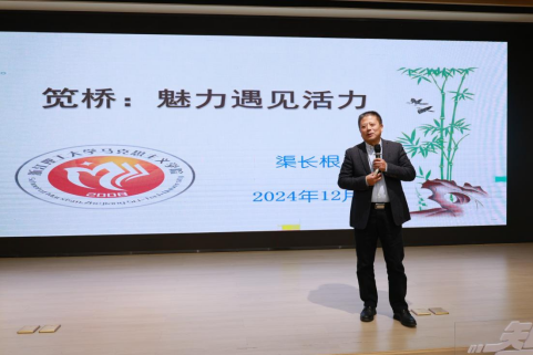 话剧结束后,渠长根教授作《笕桥:魅力遇见活力》主题报告,他凭借丰富的经验和深厚的学术造诣,以“笕桥:朝气蓬勃之地、创新创业之地、爱国奉献之地”为主线,结合笕桥地区的乡土文化、红色人物、红色故事,深入浅出地阐述了红色文化在新时代的育人价值,为师生们带来一场别开生面的思想盛宴,引发了师生们的强烈共鸣。