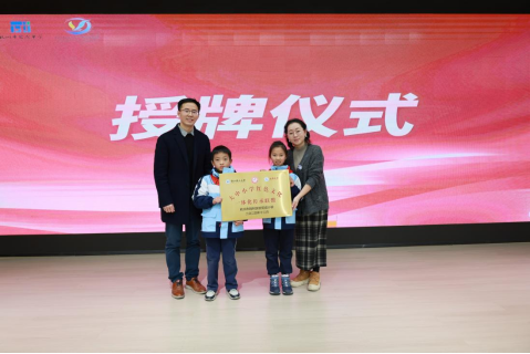 周照东、吕凉琼共同为浙江理工大学“大中小红色文化一体化传承联盟(杭州市胜利实验笕成小学)”揭牌。
