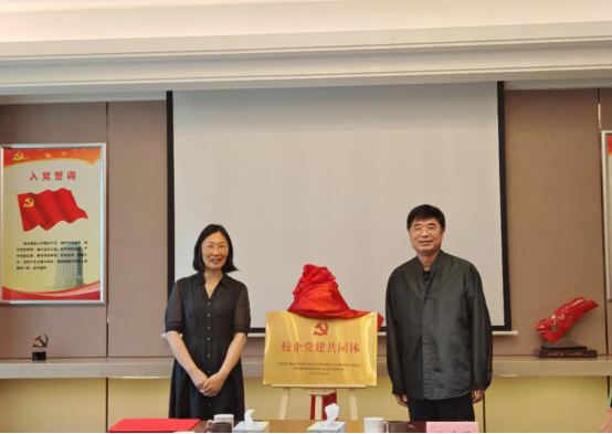 材料学院党委书记仰滢与中共金富春集团有限公司党总支书记周文峰共同为党建联建铜牌揭牌。