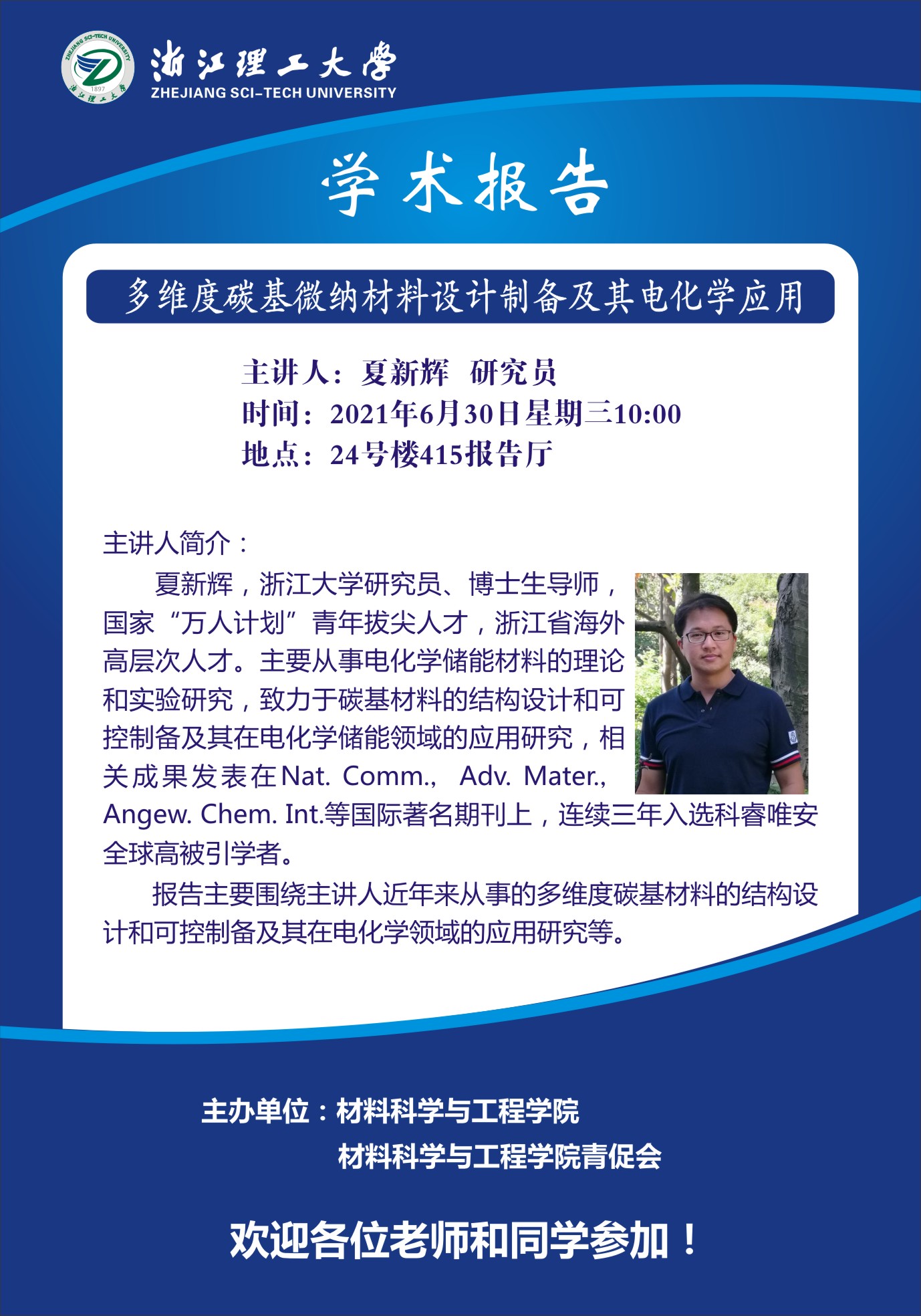 学术讲座【25】:多维度碳基微纳材料设计制备及其电化学应用