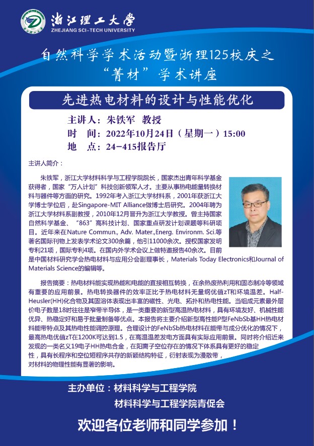 学术讲座【38】:先进热电材料的设计与性能优化