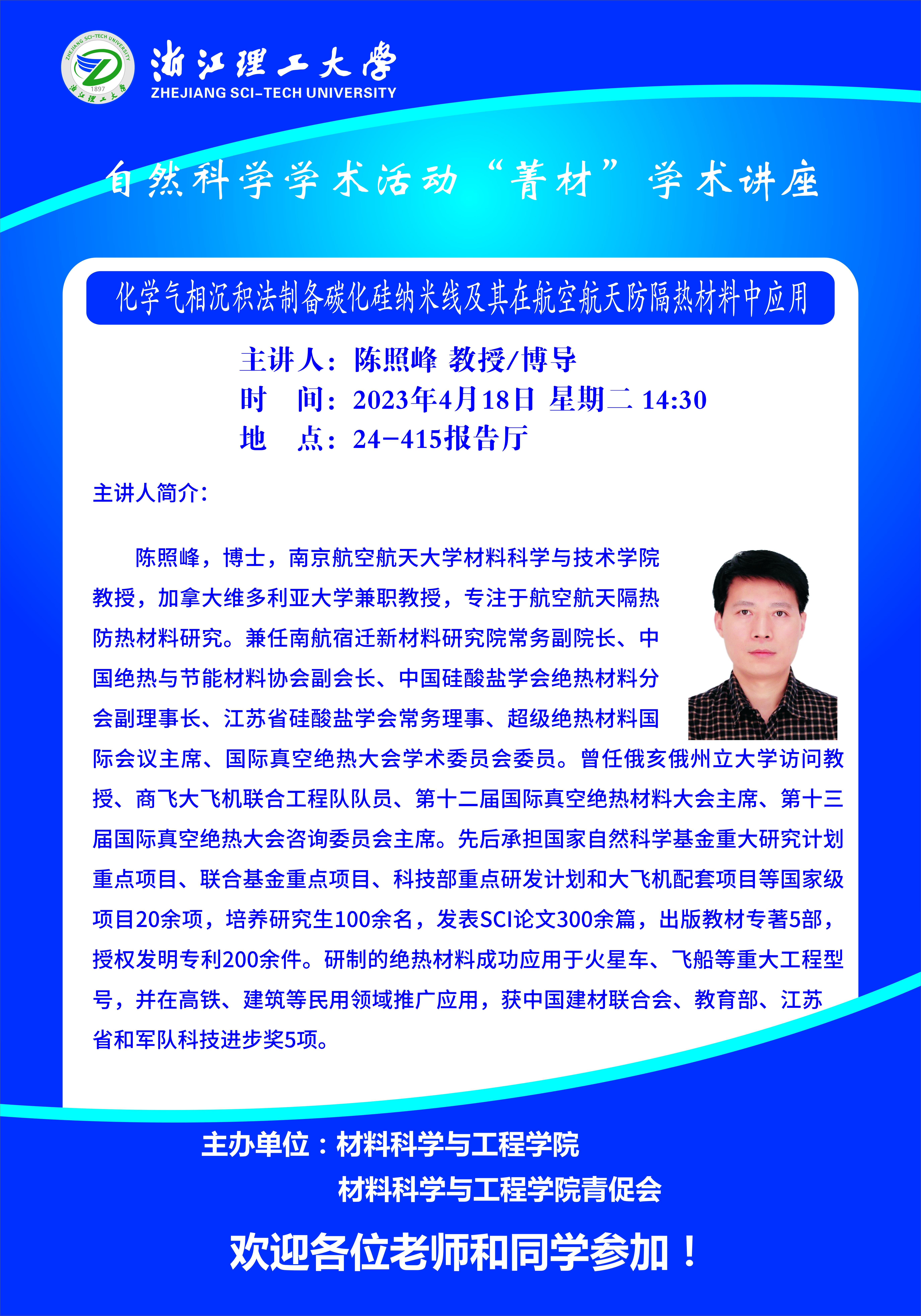 学术讲座【54】:化学气相沉积法制备碳化硅纳米线及其在航空航天防隔热材料中应用