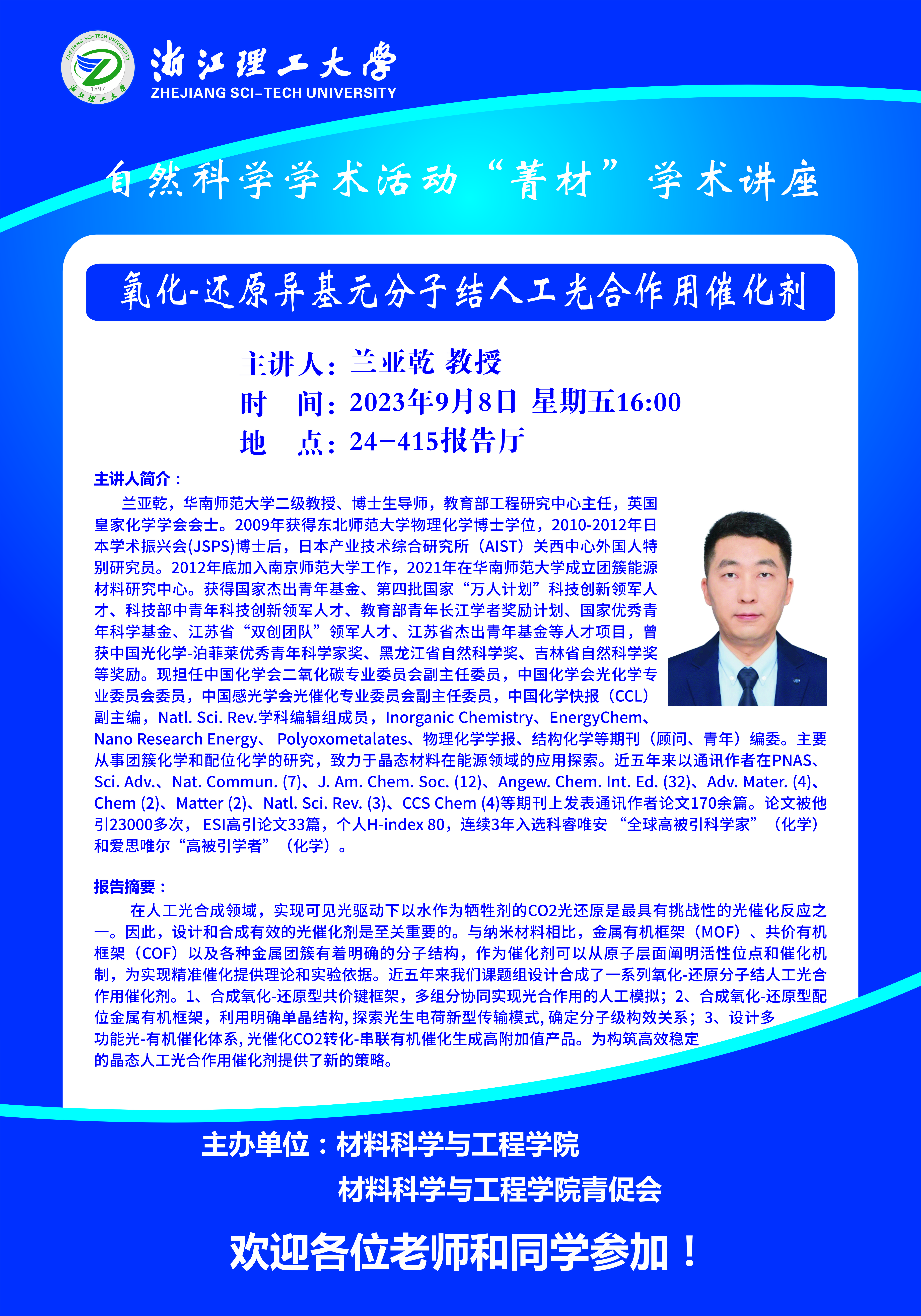 学术讲座【59】:氧化-还原异基元分子结人工光合作用催化剂