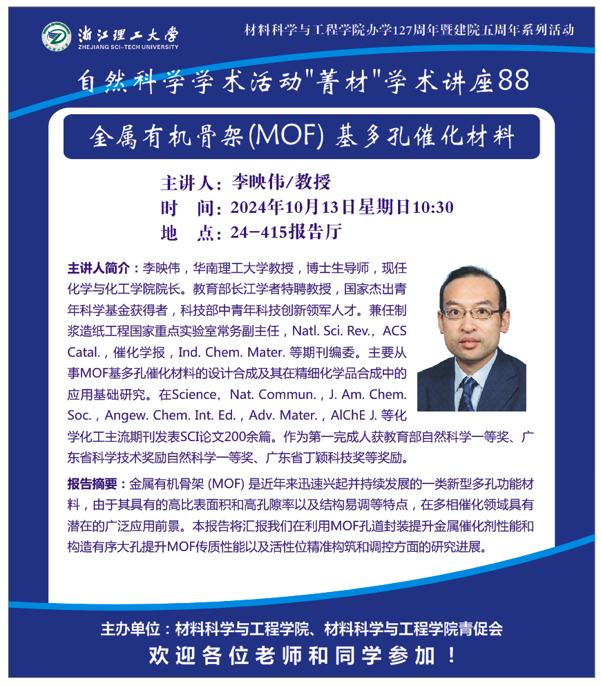 学术讲座【88】:金属有机骨架 (MOF) 基多孔催化材料