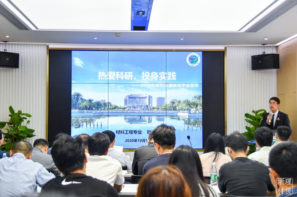 研究生国家奖学金评审实施细则(试行)》,学院首次采用公开答辩的形式进行角逐,在给优秀学子充分展示舞台的同时,更是在全院范围内树立榜样,做好宣传,本次答辩会取得圆满成功!