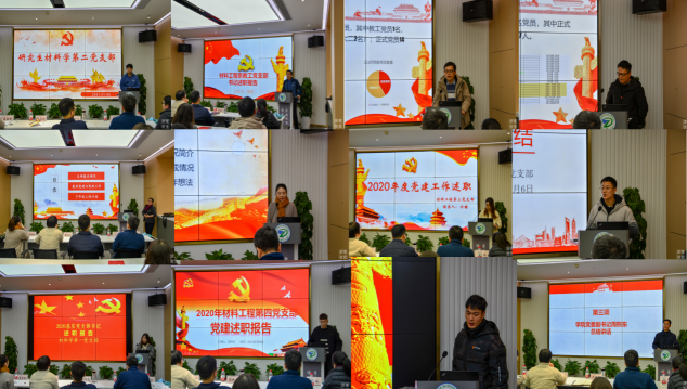 随后,来自11个党支部的代表对各支部2020年度工作进行了全面系统的梳理总结,分别针对自身以及各支部工作存在的问题进行剖析,并有针对性地提出工作举措和2021年支部工作计划。高分子材料系教工党支部和材料工程系教工党支部分别从支部基本情况、履职工作概况、支部存在的问题及下年度工作思路及措施方面进行了汇报。教工党支部以党支部标准化建设和课程思政改革为重点,党建和业务工作相结合为重要方法,在教学交流、增强内部凝聚力方面充分发挥党支部的战斗堡垒作用,加强基层党组织的建设。同时也分析指出对党建业务结合不够、党建工作创新性不足等问题,今后将在党员教育和党建工作创新上下足功夫,切实强化党支部的建设。