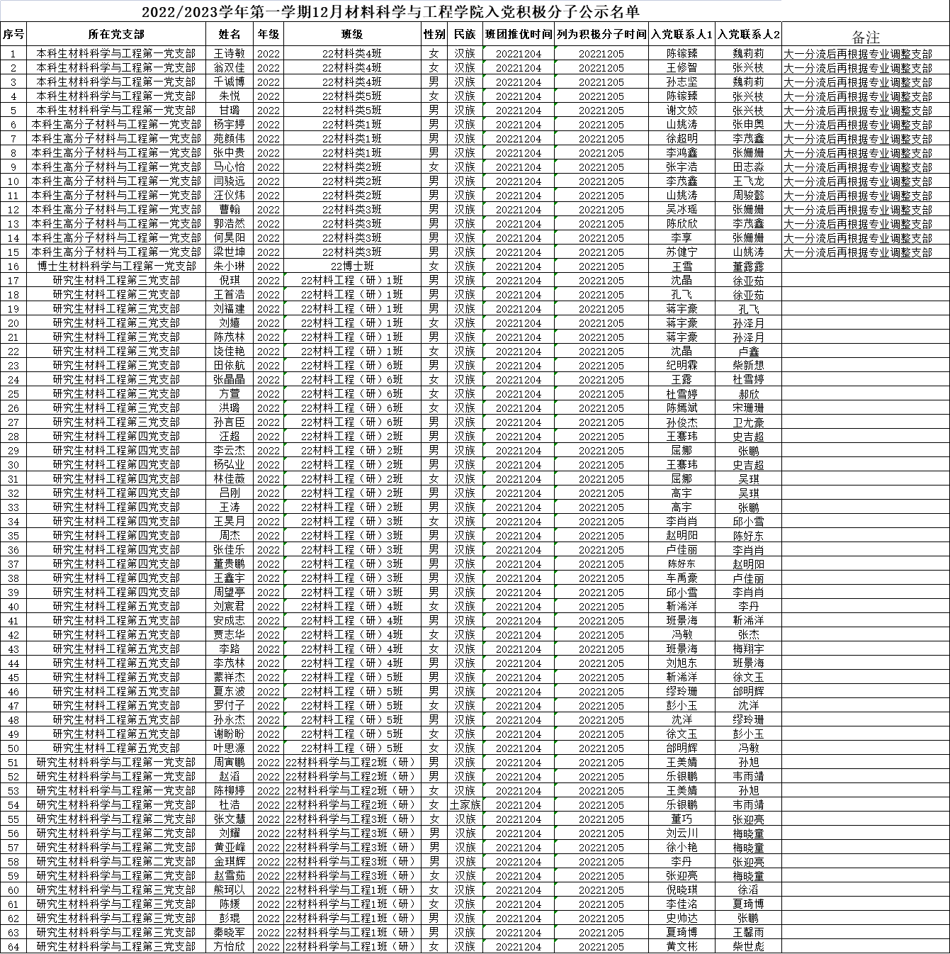 经各团支部“推优”、学院团委审核以及各党支部委员会讨论研究决定,确定王诗敏等64位同志为入党积极分子,现将名单公示如下: