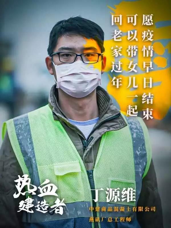 2月5日的《长江日报》发表了一组题为“致敬雷神山的热血建设者”系列照片,其中一幅就是丁源维的照片,上面写着“愿疫情早日结束,可以带女儿一起回老家过年。”