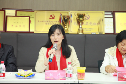 浙江理工大学上海校友会副会长、81级制丝专业校友代表王春荣讲话。表示看到母校与日俱进、蒸蒸日上,取得了一系列重大科技创新成果,大学排行不断跃升,作为毕业多年的校友由衷的高兴自豪,将一如既往关心支持母校发展。据悉,丝绸博物馆收藏有王春荣校友捐赠的多台古代织机模型。学校办学120周年校庆时,81级制丝专业校友们在钱塘校区捐建了校园文化景观石——“恋”字石,以表达对母校和丝绸的“爱”。