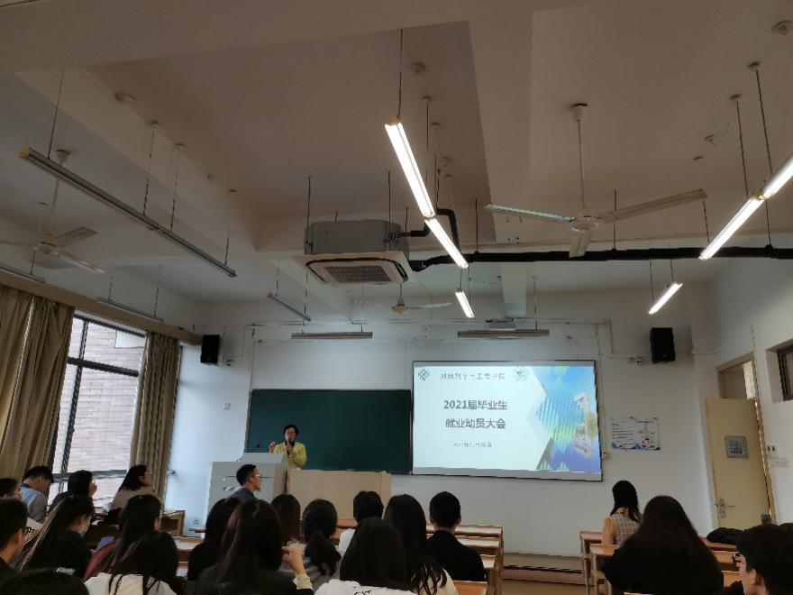 就业动员会上,周照东老师为同学们讲解2021届毕业生的就业形势,并给同学们提出了几点建议:一是能力上,要学有所成、学有所长;二是思想上,要摒弃错误思想,转变就业观念;三是心态上,要保持积极乐观的心态;四是技巧上来讲,要充分准备、掌握技巧。同时,他表示学院将进一步增强服务意识,健全就业服务体系建设,从单一的指导向指导与服务并重转变,为广大同学的顺利就业、愉悦就业提供力所能及的服务。