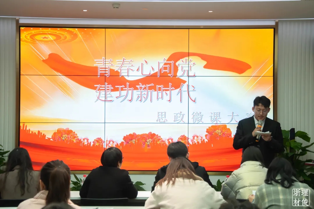 为庆祝建党100周年,全面贯彻落实习近平总书记在学校思想政治理论课教师座谈会上的重要讲话精神,根据浙江省高校思政微课大赛组委会的部署和安排,3月9日晚,材料学院在学院415报告厅举办2021年度“青春心向党 建功新时代”思政微课大赛。