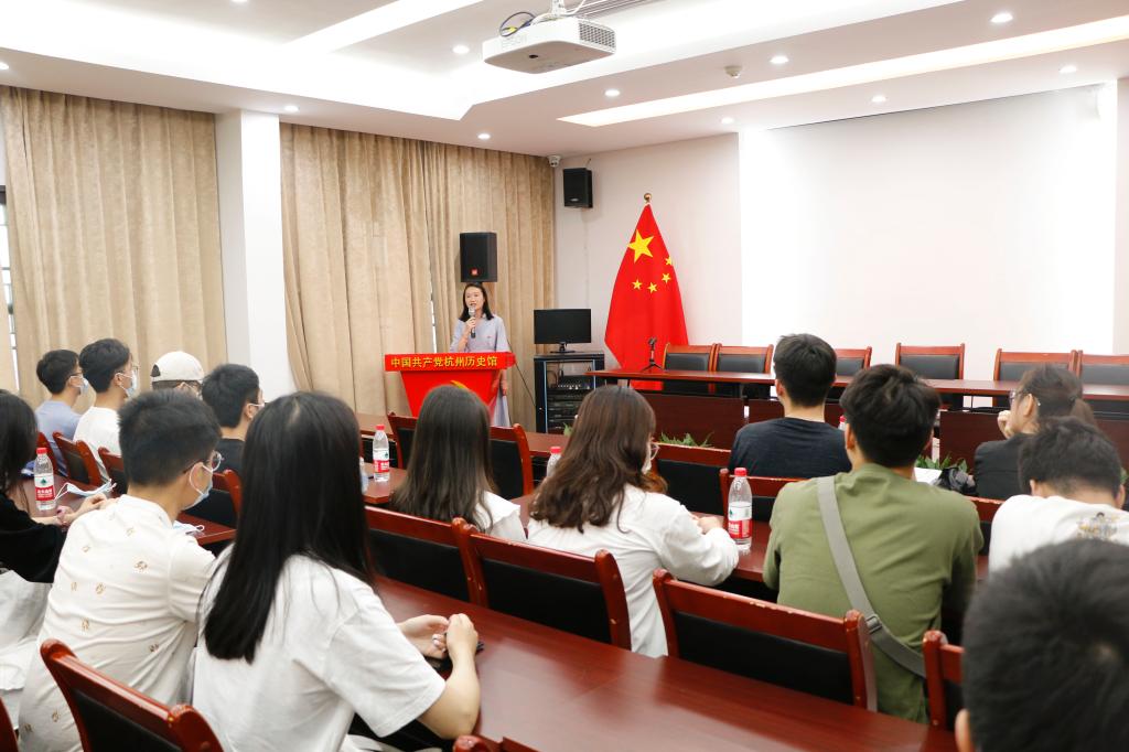在中国共产党杭州历史馆的学习厅,辅导员张兴枝以“觉醒年代中的青春故事”为主题为学员们带来早期中国共产党人陈延年和陈乔年的悲壮故事,从他们父亲陈独秀接他们到上海勤工俭学开始,经过无数曲折经历,最终成长为马克思主义的坚定信仰者和革命牺牲者。从他们的经历中,可以看出中国共产党人在早期的环境有多么严峻。一个时代造就一个时代的英雄与传奇,我们没有他们年代的磨难与经历,但同样需要传承他们的艰苦奋斗的精神,正如我们所说的“先烈回眸应笑慰,擎旗自有后来人”。