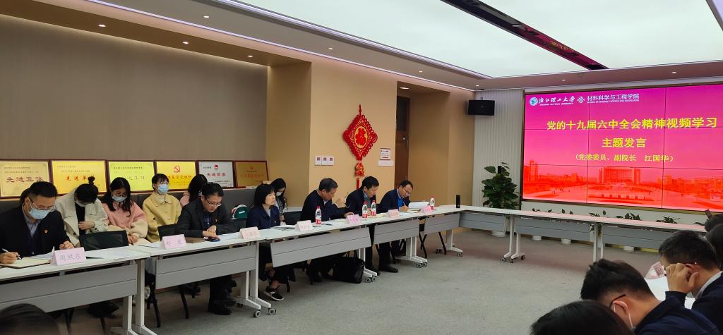在学习党的十九届六中全会精神环节,全体人员集体观看学习了党的十九届六中全会精神相关视频。党委委员,副院长江国华结合党的十九届六中全会学习主题进行发言。他讲到,站在“两个一百年”奋斗目标的历史新起点,党的十九届六中全会的召开具有深刻的现实意义。要让党的十九届六中全会成为推动时代发展的“动力”,尤其需要我们深悟三重内涵:历史内涵,“欲知大道,必先为史”;价值内涵,“知古鉴今,启迪未来”;人民内涵,“时代是出卷人,我们是答卷人,人民是阅卷人”。凡事预则立,不预则废,有梦想才有目标,有希冀才会有奋斗。只要我们胸怀理想、坚定信仰、脚踏实地、苦干实干,把“理工梦”与“中国梦”紧密结合起来,就一定能拥抱美丽的中国梦!