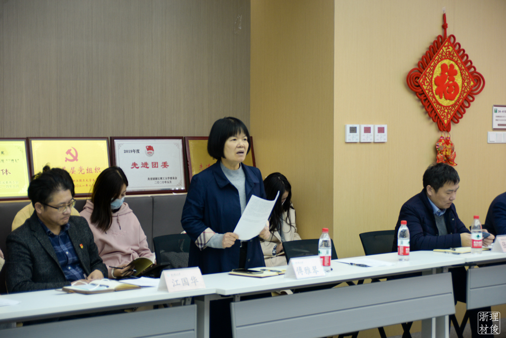 会上,学院党委书记傅雅琴对近期学院党建工作进行部署。主要包括持续开展“三为”专项实践;持续开展“红色基因传承”活动;深入学习贯彻党的十九届六中全会精神;全面检视党建工作的问题和不足;开展“一支部一品牌”培育申报工作;加强入党积极分子管理教育;做好党史学习教育指定书目学习;“双指数”建设要求等。