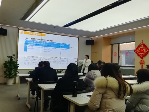 为进一步落实新时代高等学校本科教育工作会议精神,落实立德树人根本任务,进一步推进基层教学组织机制建设,强化育人导向,优化专业结构,深化教育教学改革创新,全力提升本科生培养质量,着力打造一流本科专业教育,12月29日上午,高分子材料系在415报告厅召开2021年度高分子材料与工程专业本科教学工作交流总结会。会议由系主任张明老师主持,系副主任陈世昌、董余兵及全系教师参加。