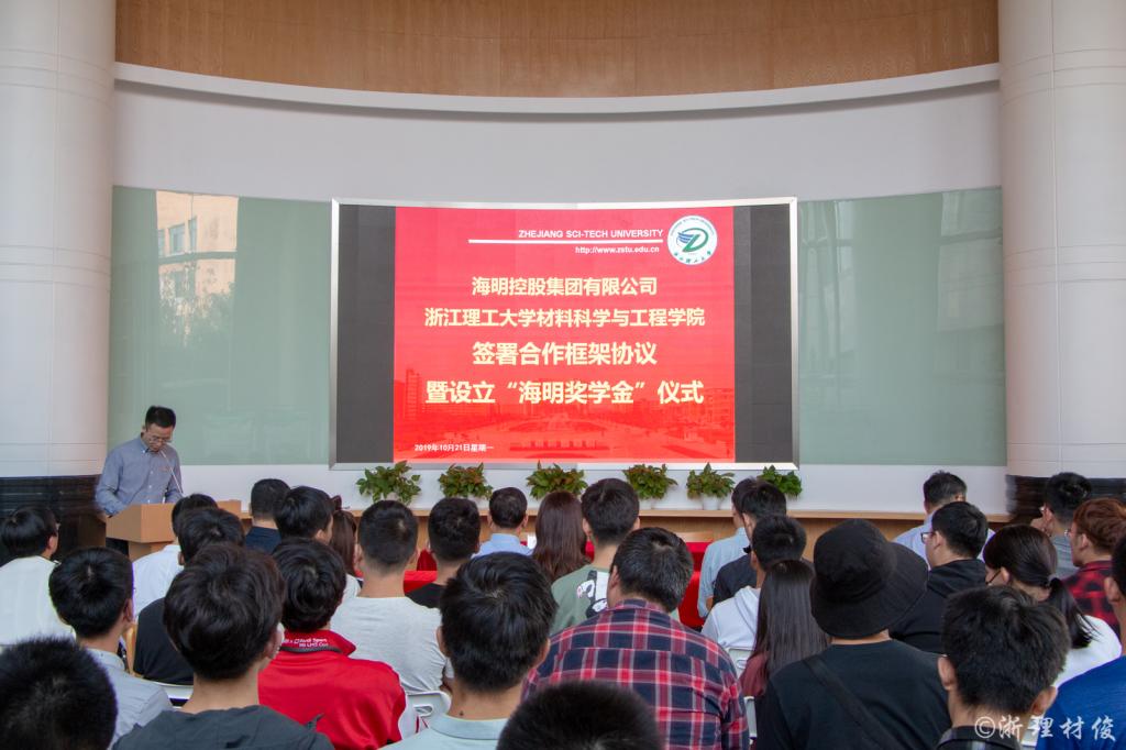 教育发展基金会与海明控股集团有限公司定向捐赠协议书》。根据协议,海明控股在学院设立总计50万元的“海明奖学金”,支持助力学院学生培养和成长。
