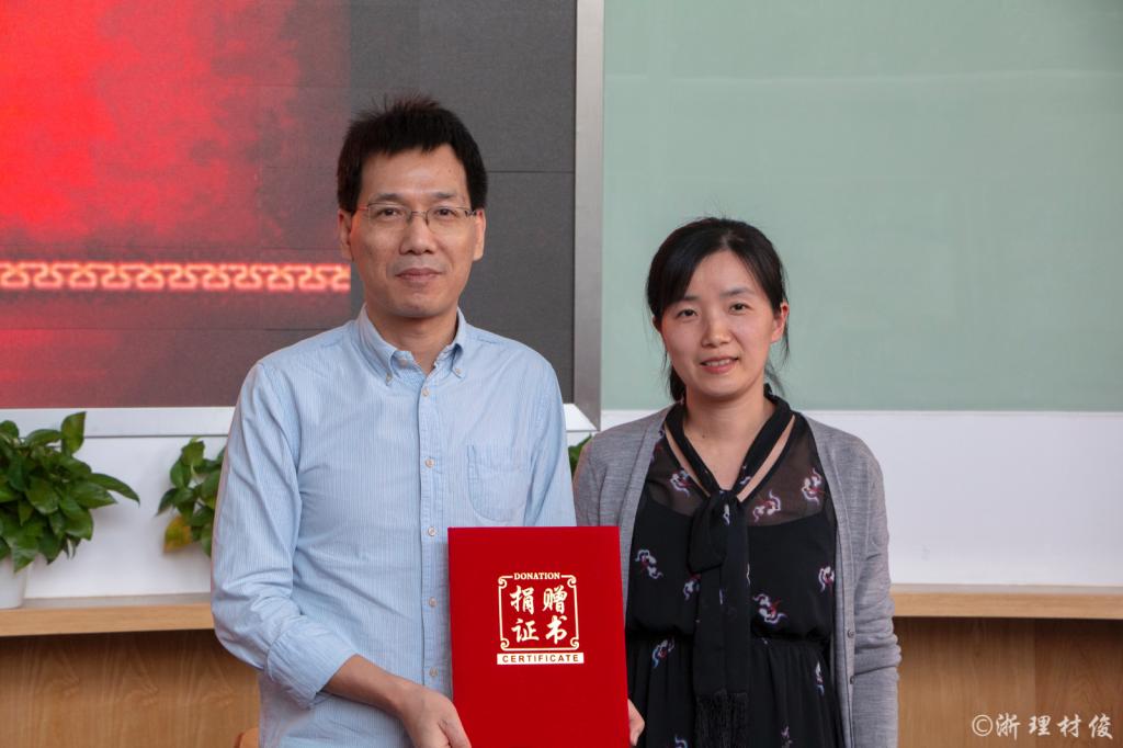随后,校友工作办公室主任陈艳为海明控股集团有限公司颁发捐赠证书,感谢海明控股对学校教育事业发展的支持和帮助。