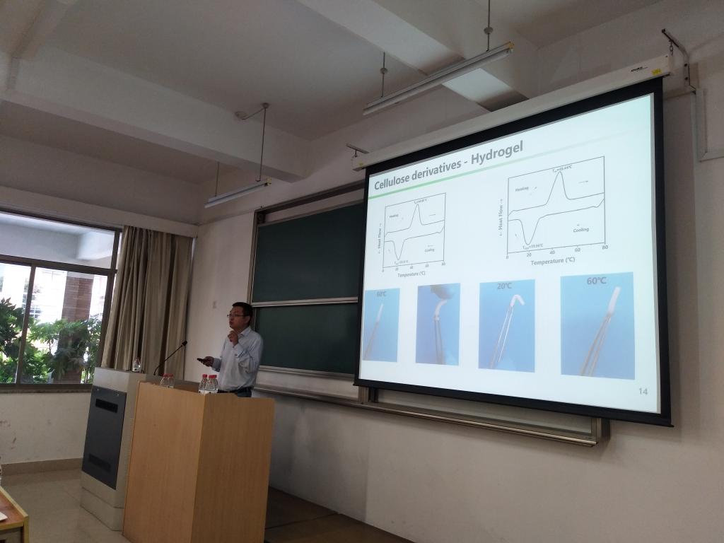 随教授首先指出天然可再生高分子材料来源广泛,可再生,可降解,易于改性,对其进行深加工以提供高附加值产品具有重要的经济和社会意义。接着从纤维素衍生物、再生纤维素、纳米纤维素及纤维素织物整理等方面,总结了自己的研究成果。隋教授的研究进一步拓展了材料在纺织印染、复合材料、生物医药、污染治理、食品、化妆品等领域的应用,具有较高的学术价值。报告会座无虚席,隋教授与师生进行了充分的互动交流与探讨,现场学术气氛热烈。