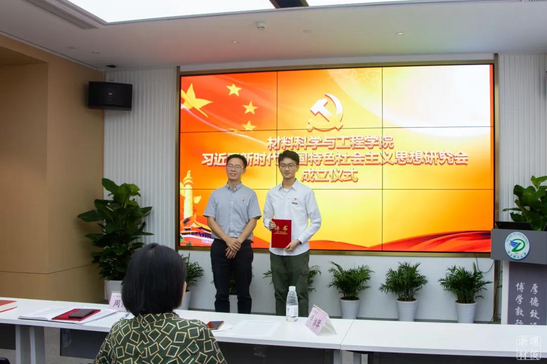 宣誓完毕后,学院党委副书记周照东老师为“习特会”副会长王家栋同学颁发聘书。王家栋同学在随后的表态发言中表示自己会严于律己,恪尽职守,尽自己最大的努力为材料学院习特会的发展做贡献。