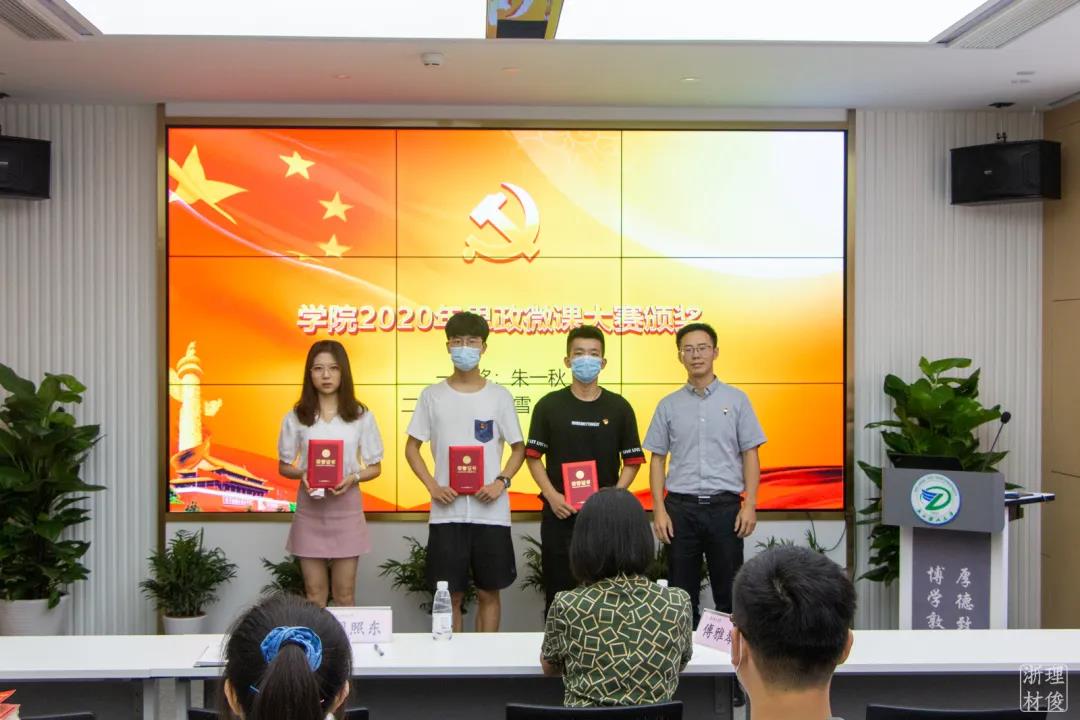 随后学院党委副书记周照东老师对参加学院“青春心向党 建功新时代”思政微课大赛获奖的同学颁发证书。