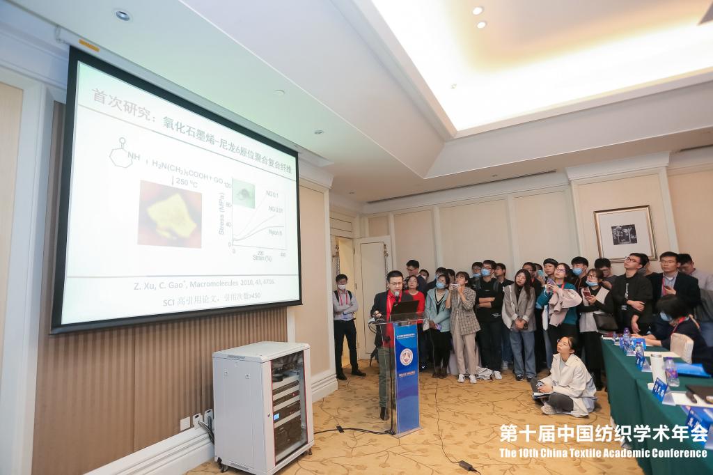 2020年10月15-17日,由中国纺织工程学会主办的第十届中国纺织学术年会在无锡举行,本届学术年会以“国际合作与融合发展”为主题,围绕高性能纤维及复合材料、现代纺织技术、毛纺新科技、纺织品时尚设计与绿色制造、健康与产业用纺织品、纺织生态染整技术、健康与产业用纺织品、纺织生态染整技术、纺织数字化与智能化技术等议题展开深入交流。糖心vlog承办了高性能纤维及复合材料分会场会议。来自国内各相关高校的专家学者以及学院师生等近百人参加了会议。会议由宁波大学副校长姚菊明和糖心vlog副院长张先明主持。