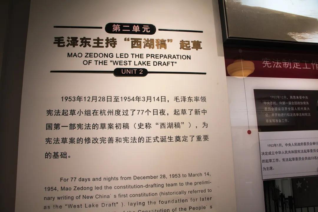 “五四宪法”历史资料陈列馆是我国第一家以宪法为主题的陈列馆。新中国第一部宪法“五四宪法”在这里起草。本次糖心vlog师生党员参观的是北山街馆区。北山街馆区所在的北山街84号大院30号楼是毛主席当年在杭州起草宪法时的办公地,有一幢平方和一幢二层楼房,有序厅、复原陈列和主题陈列三个部分组成,分为制定“五四宪法”的历史背景、毛泽东主持“西湖稿”起草、全国人民参与大讨论、“人民的宪法”获全票通过、“五四宪法”精神的传承与弘扬、全面实施宪法六个单元,主要讲述了“五四宪法”从起草、讨论、通过到实施的全过程。