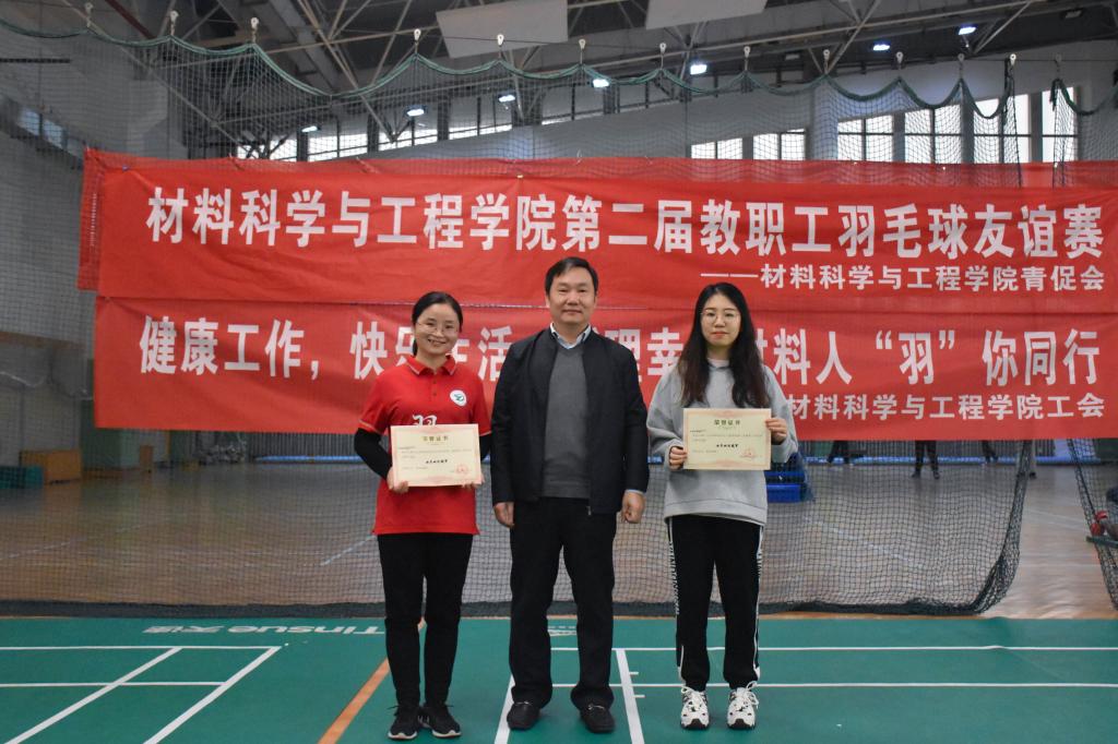在颁奖环节,学院领导为获奖的选手们颁发了荣誉证书。参赛选手们向赛事组织和工作人员的辛苦付出表达了感谢,同时也希望学院今后继续举办类似的活动,为大家提供一个羽毛球运动交流的平台。