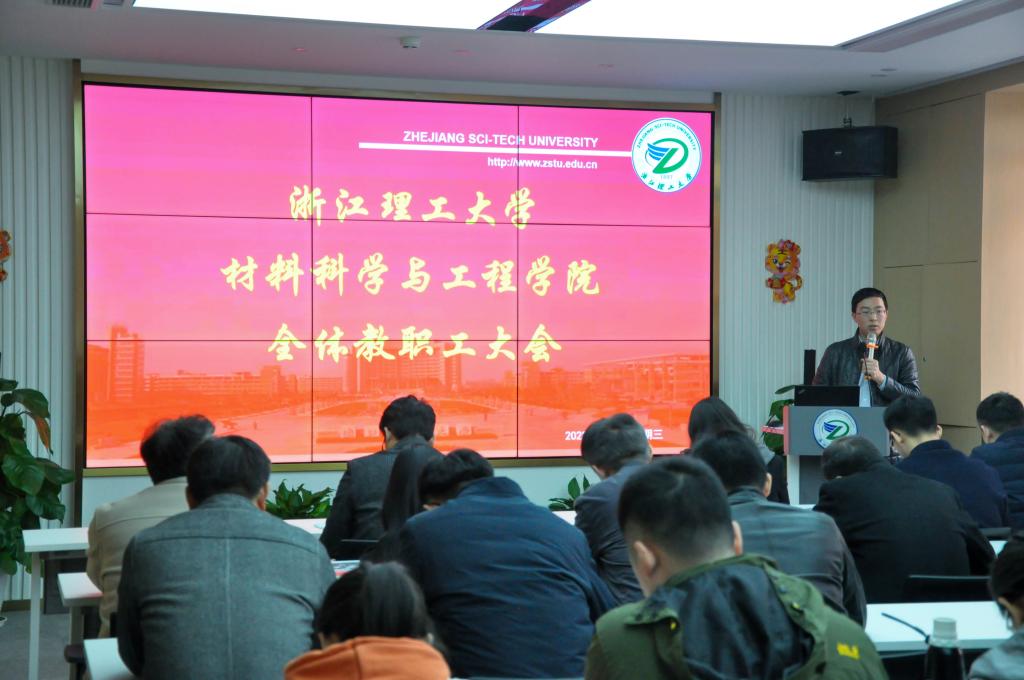 3月2日下午,材料学院在24号楼415报告厅召开新学期全体教职工大会,传达学校2022年工作部署会议精神,部署新学期工作,进行工会委员增补工作。会议由学院院长张先明教授主持,学院全体党政班子和教职工参加会议。