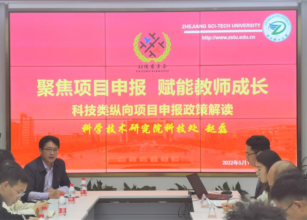 在24-415报告厅举行“材俊思享荟”第四期——科技纵向项目申报政策解读交流会,聚焦项目申报,赋能教师成长。学院特邀学校科学技术研究院科学技术处高新技术科科长赵磊来作辅导交流,会议由副院长江国华主持。