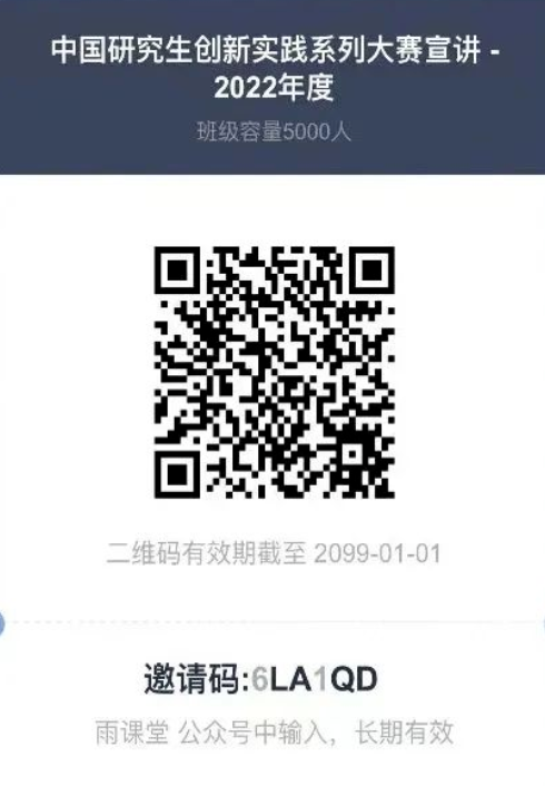 中国研究生创新实践系列大赛属于国家级赛事,是学校认定的研究生学科竞赛。为方便有关高等学校、科研院所研究生管理部门,参赛研究生、指导教师等用户了解中国研究生创新实践系列大赛各主题赛事,5月20日,创新实践大赛宣讲视频上线“雨课堂”。扫描下方二维码,即可随时观看。