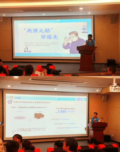 “精神红”是中华民族的底色,“生态绿”是中华大地的靓妆,在当好红色文化传播者的同时,更要做好红色沃土的建设者。材料学院“强国有我,‘核’你一起”青年大学生实践宣讲团成员黄鑫鑫进行题为《核工业“脊梁”邓稼先》的宣讲。他在宣讲中提到,邓稼先先生敢为人先、攻坚克难的精神值得传颂和铭记,永远是一头核动力领域的“拓荒牛”,这也是科研人员需要培养的精神。宣讲团成员代俊杰在《“核”力碳达峰,助力碳中和》的主题宣讲中提到,“双碳”目标的提出,对应对气候变化、构建人类命运共同体,具有非常重要的现实意义,也对核能产业高质量发展和企业绿色发展提出了新要求。