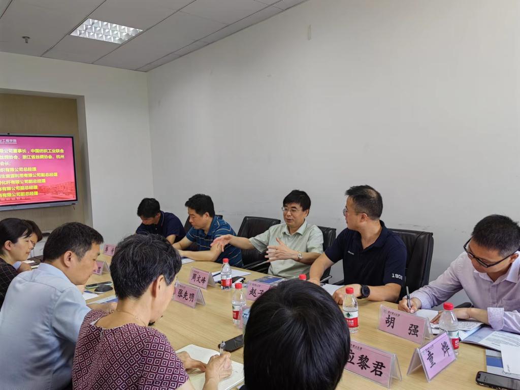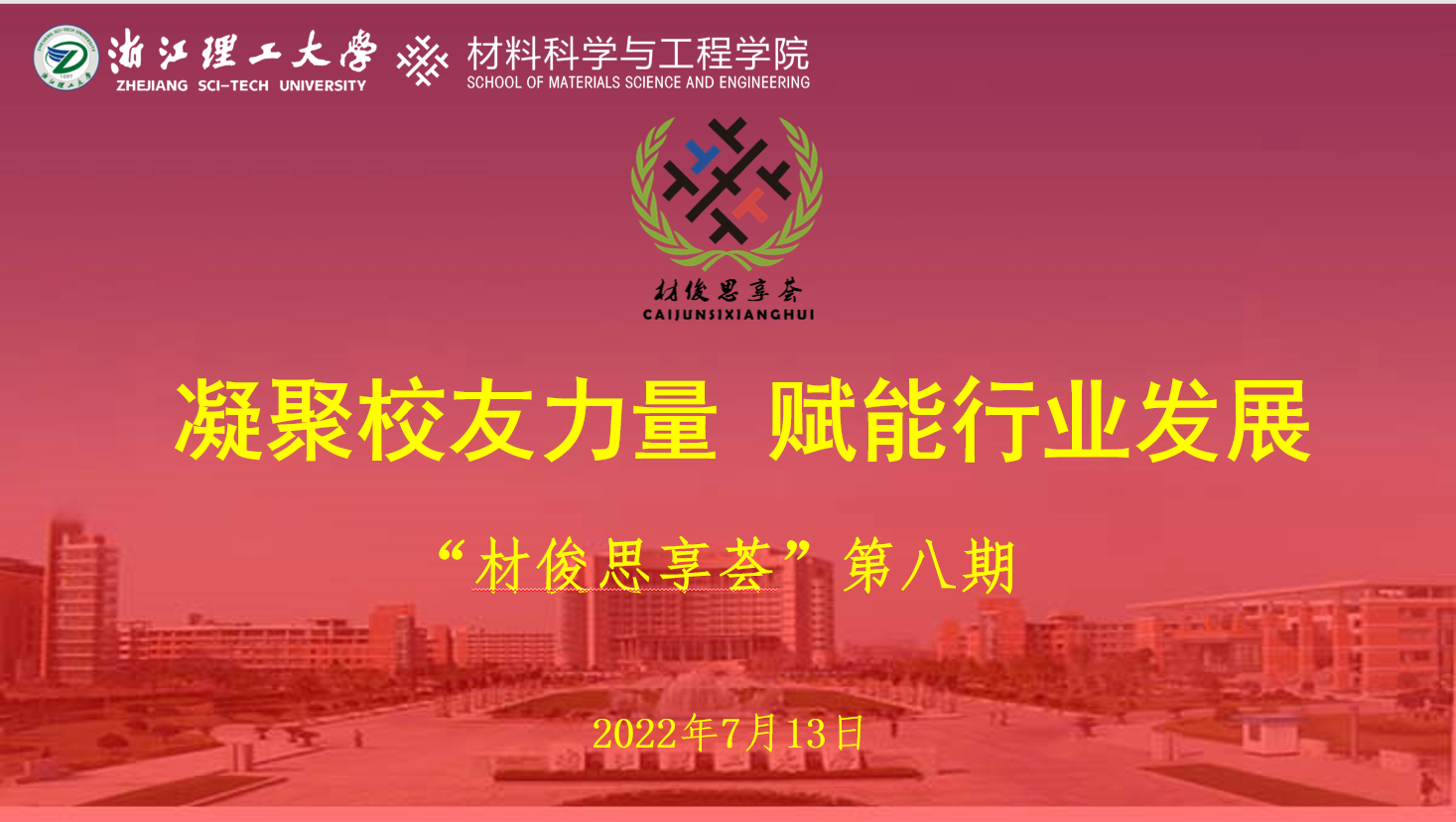 7月13日,材料学院举行“材俊思享荟”第八期主题交流会——凝聚校友力量 赋能行业发展。1979级制丝专业校友、金富春集团有限公司董事长、中国纺织工业联合会理事、中国丝绸协会、浙江省丝绸协会、杭州市丝绸协会副会长周文峰,浙江金富春纺织有限公司总经理汤洪海,界首市金吴再生资源利用有限公司副总经理胡强,安庆市金富春化纤有限公司副总经理华奇,浙江和源服饰有限公司副总经理赵子文,浙江和源服饰有限公司副总经理童烨受邀作为主题交流嘉宾。校友办主任陈艳、材料学院院长张先明、副主任应黎君、纤维材料工程研究所所长王秀华、高分子系副主任陈世昌和部分青年教师参加交流分享。