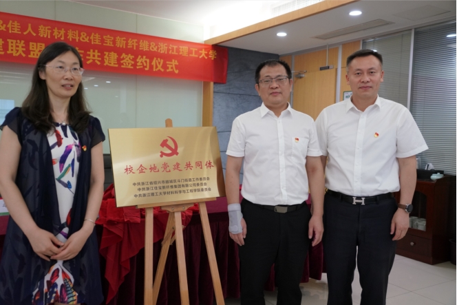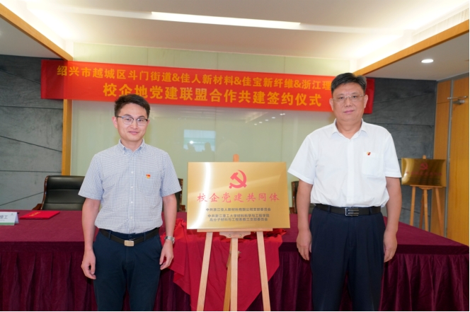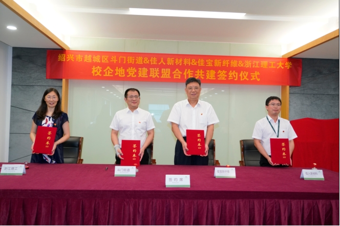 党委联合浙江佳宝新纤维集团党委、绍兴市越城区斗门街道党工委、浙江佳人新材料有限公司党支部,共同成立校企地党建共同体,并启动校企地党建共同体建设签约仪式。